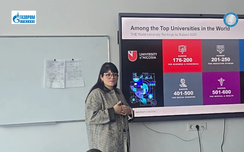 «Գազպրոմ Արմենիա» ՓԲԸ «Ուսումնա-սպորտային համալիր» հիմնարկի 9-ից 12-րդ դասարանների աշակերտները մասնագիտական կողմնորոշման հանդիպումների շրջանակում հյուրընկալել են Կիպրոսի Նիկոսիայի համալսարանի ներկայացուցիչներին։
