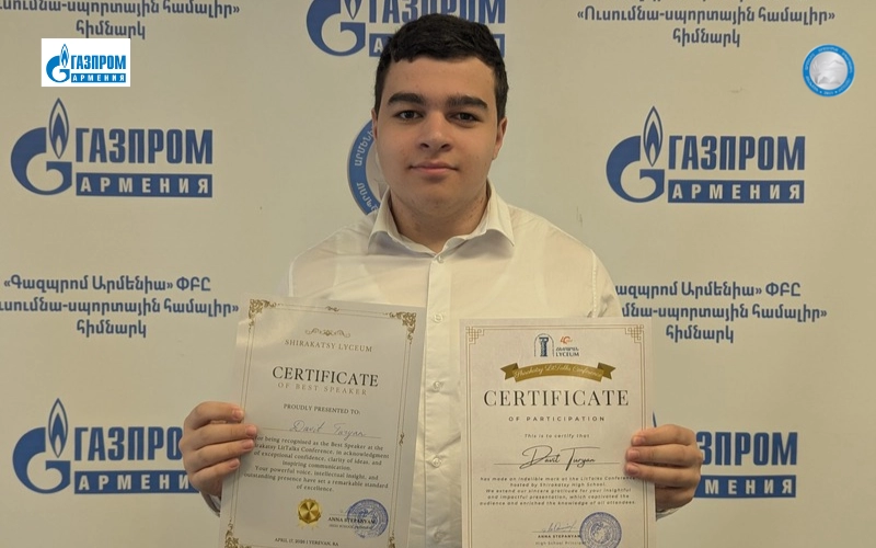 «Գազպրոմ Արմենիա» ՓԲԸ «Ուսումնա-սպորտային համալիր» հիմնարկի 11-րդ դասարանի աշակերտ Դավիթ Տուրյանը մասնակցել է համապետական երկօրյա «Shirakatsy LitTalks» գիտաժողովին՝ դառնալով լավագույն զեկուցողներից մեկը և արժանանալով «Լավագույն խոսնակ» կոչմանը։