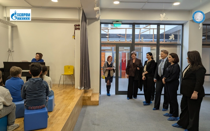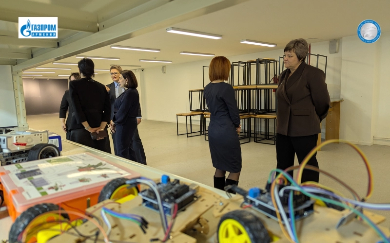 Հիմնարկում ղրղզական պատվիրակության անդամներին դիմավորել են «Գազպրոմ Արմենիա» ՓԲԸ «Ուսումնա-սպորտային համալիր» հիմնարկի տնօրեն Ալեքսանդր Գրիգորյանը, տնօրենի տեղակալներ Զավեն Առաքելյանը, Ելենա Ամիրխանյանը, Էմին Սանթրոսյան և Գևորգ Մխիթարյանը, ՏՏ ոլորտի պատասխանատու Պարույր Վարդերեսյանը, դպրոցի ուսումնական աշխատանքների պատասխանատու Լուսինե Գալստյանը, լրացուցիչ կրթության պատասխանատու Տամարա Բաղդասարյանը և մարքեթինգի գծով գլխավոր մասնագետ Մարինե Առաքելյանը։