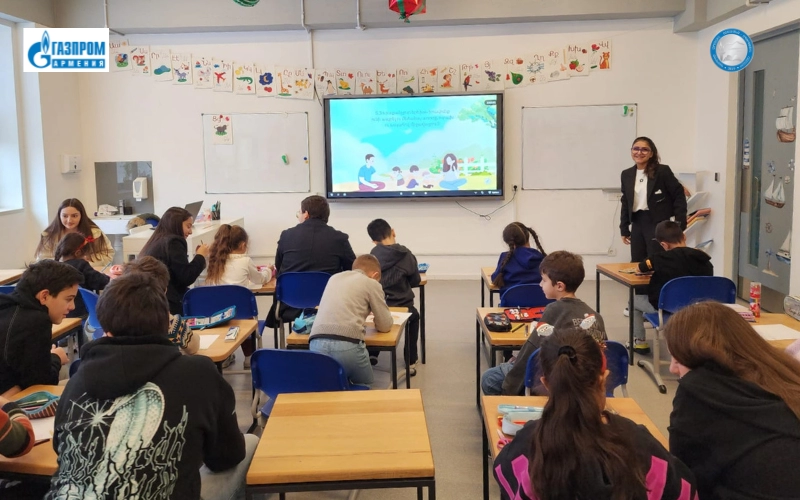 Դեկտեմբերի 10-ին ամբողջ աշխարհում նշվում է Մարդու իրավունքների պաշտպանության օրը։ Այս կապակցությամբ այսօր «Գազպրոմ Արմենիա» ՓԲԸ «Ուսումնա-սպորտային համալիր» հիմնարկի ավագ դպրոցի 10-րդ դասարանի աշակերտները «Հասարակագիտություն» առարկայի ուսուցիչ Մարինե Սարգսյանի հետ տեղեկատվական դաս-քննարկում են վարել 1-ին ե դասարանի աշակերտների համար։