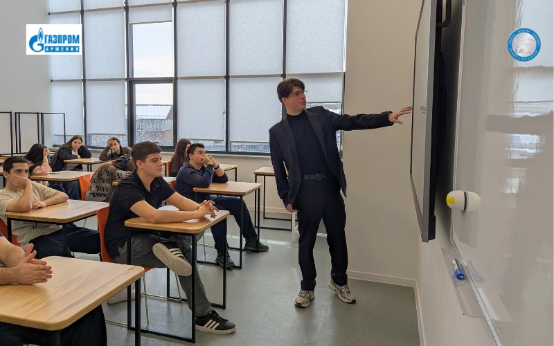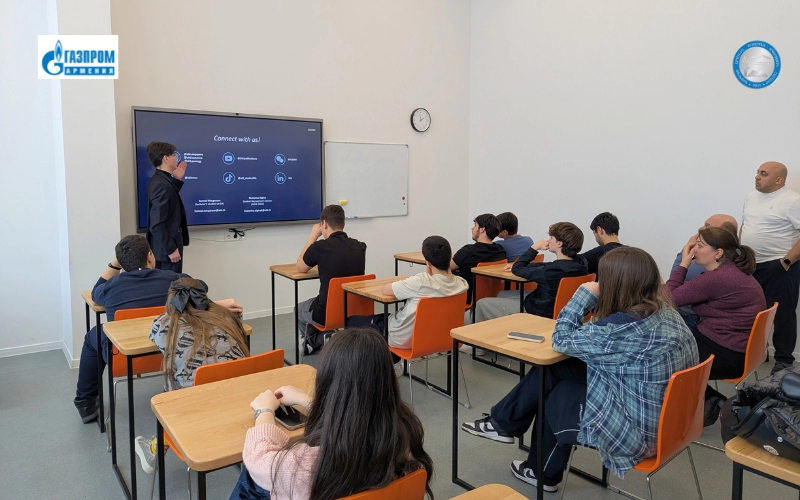 «Գազպրոմ Արմենիա» ՓԲԸ «Ուսումնա-սպորտային համալիր» հիմնարկի 2023-2024 ուստարվա շրջանավարտ Սամվել Մարգարյանն այցելել է ՈՒՍՀ ավագ դպրոցի աշակերտներին ու պատմել իր համալսարանական կյանքի մասին։